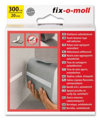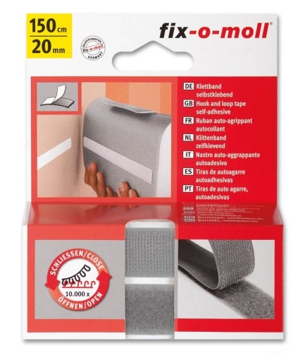 Klettband fix-o-moll selbstklebend 150cm x 20mm hellgrau