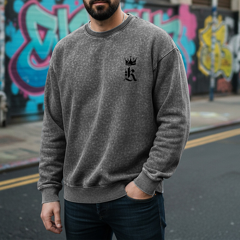 Men's Sweatshirt Distressed Hoodie Apricot Black Pink Army Green Brown Crew Neck Letter Print Daily Holiday Going out 100% Cotton Vintage Retro Casual Fall Winter Clothing Apparel Hoodies Sweatshirts