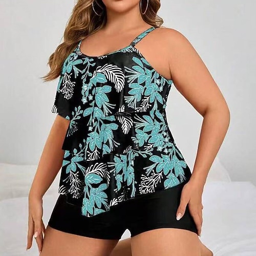 Per donna Costume da bagno Tankini 2 pezzi Tropicale Ultra Leggero (UL) Controllo addominale Elastico Senza Maniche Costume da Bagno Surf Snorkeling Estate