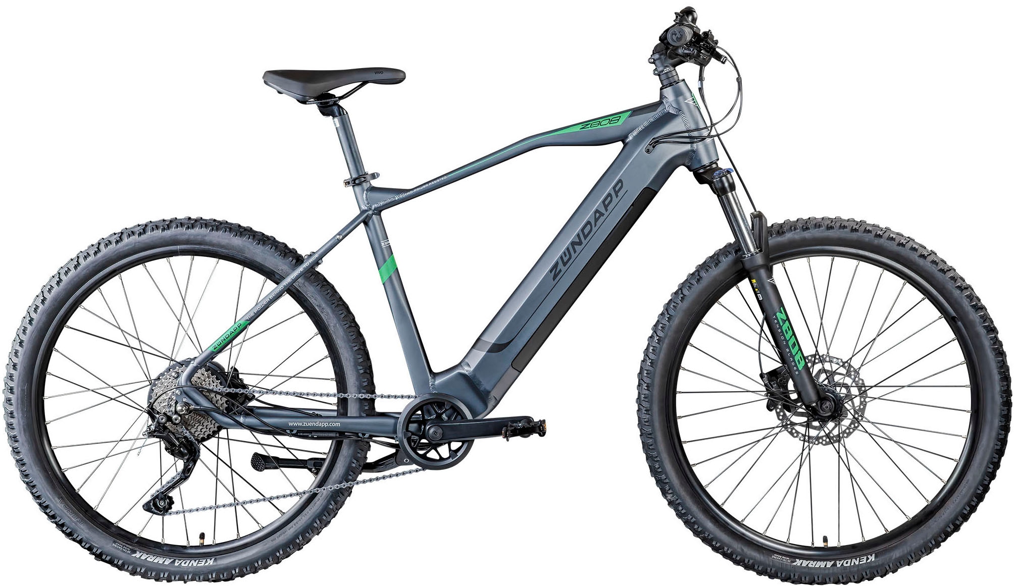 E-Bike ZÜNDAPP "Z808" Gr. 48, schwarz (grau, grün, schwarz), Elektrofahrräder, 48cm, 27,5 Zoll (69,85cm), Pedelec, Elektrofahrrad für Damen u. Herren, MTB