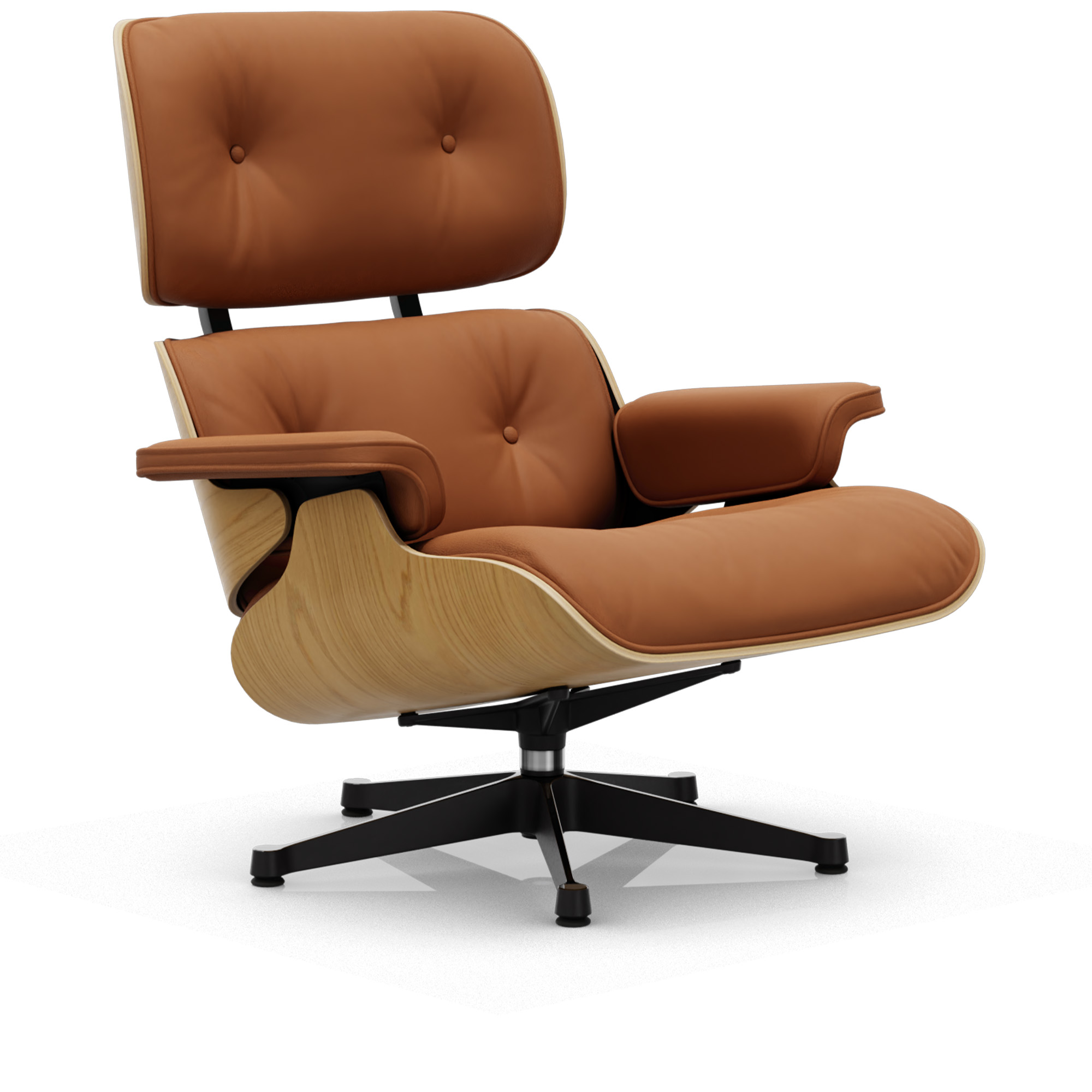 Vitra - Eames Lounge Chair Natural Chestnut Leather Premium Cognac 97 Polished Aluminium/Deep Black - Fåtöljer - Charles & Ray Eames - Läder/Metall/Trä