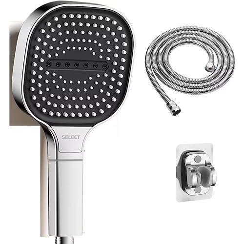 soffione doccia massaggiante ad alta pressione con tubo flessibile e supporto regolabile, 3 modalità di spruzzo, diametro quadrato 130 mm, montaggio a parete in resina ABS, filtro incluso, non