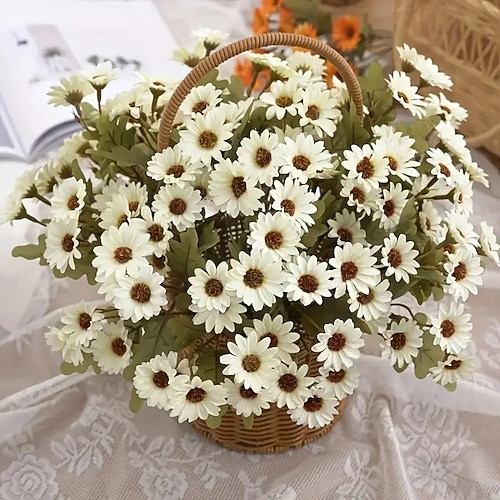 piante di fiori artificiali - margherite di colore misto in vaso di steccato per interni ufficio decorazioni per la casa di nozze, fiori finti per arco di nozze parete del giardino festa di casa