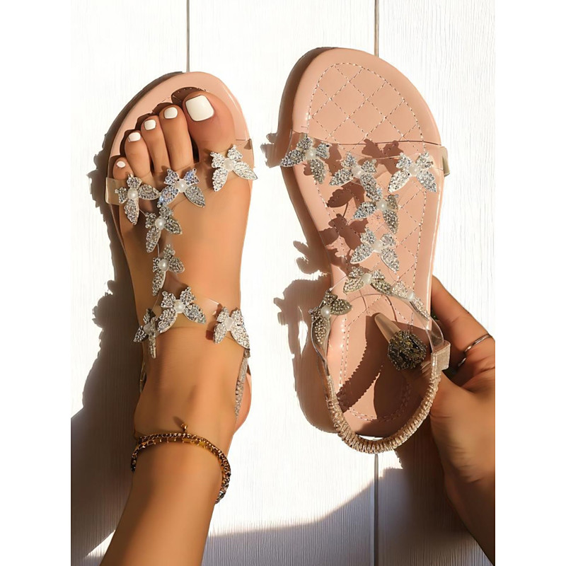 Women's Beige Double Strap Flat Sandals - Chic Casual Slip-On Sandals for Dating Everyday Wear