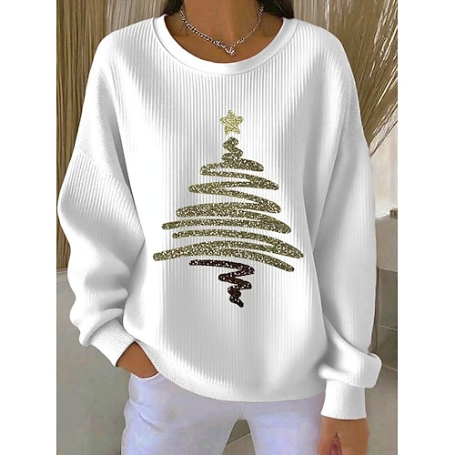 Maglione pullover per donne a Natale grafica casual maniche lunghe collo a giro top regolari abbigliamento quotidiano casual nero bianco verde chiaro rosso autunno inverno