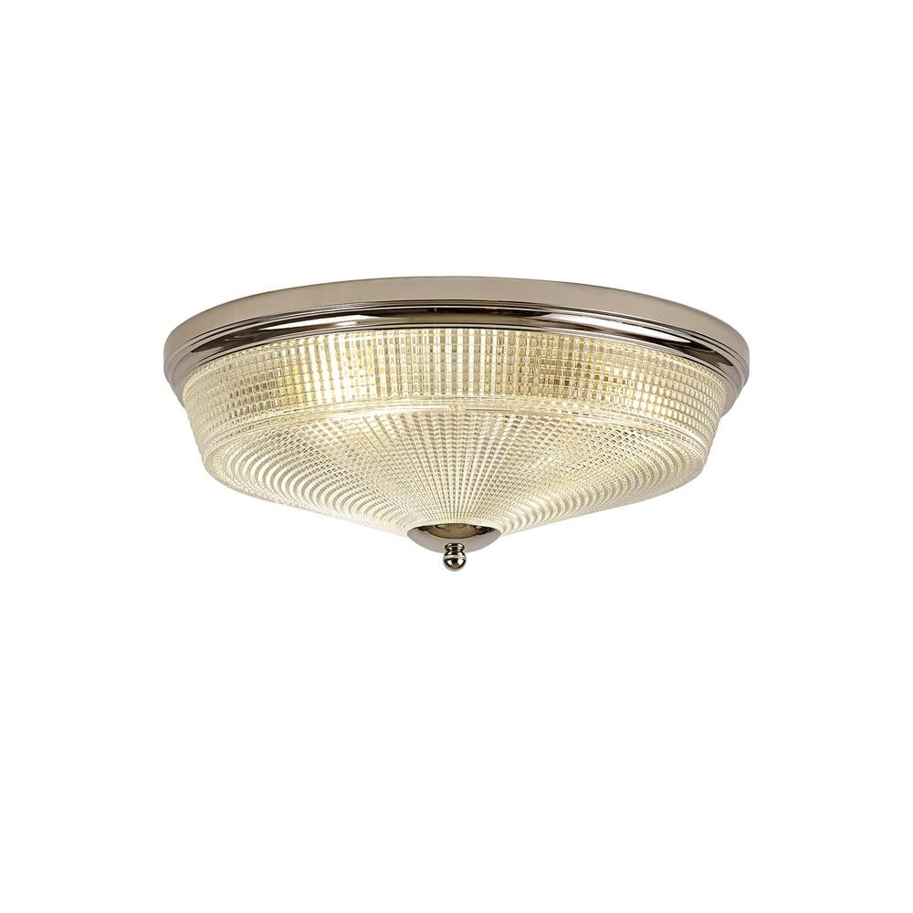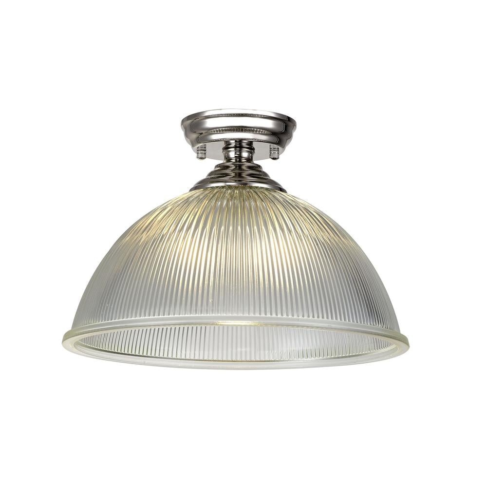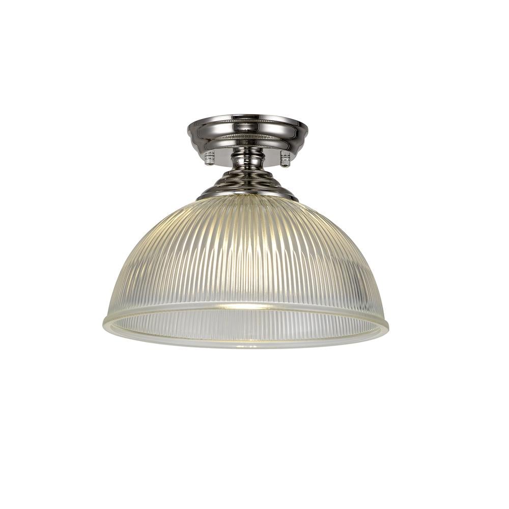 Sirius Flush Ceiling Light 1xE27 With Dome 38cm Glass Shade Polished Nickel/Clear Luxuria