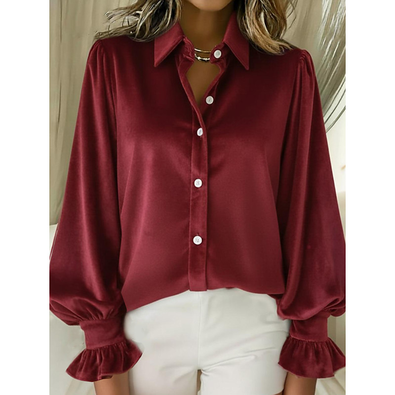 New Year Women's Velvet Solid Color Stylish Basic Long Sleeve Regular Tops Evening Party Holiday Club Uniforms Ruffle Blue Wine Gold Green Light Blue Fall Winter