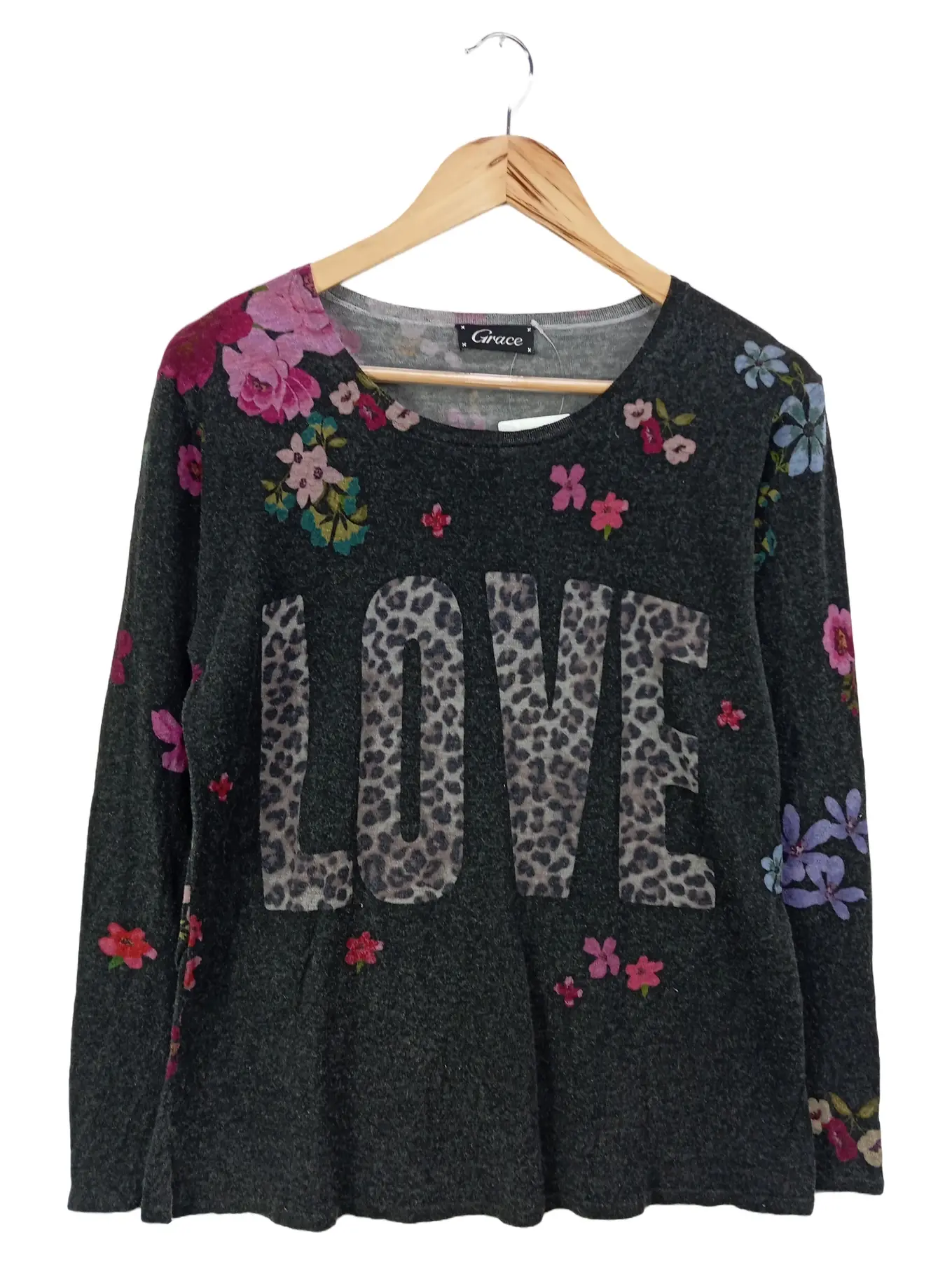 GRACE Pullover M grau Blumen Casual
