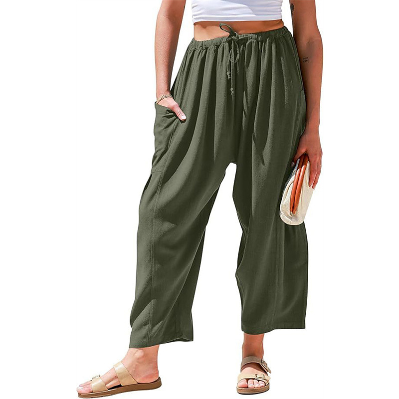 Men's Linen Pants Trousers Summer Pants Baggy Pants Beach Pants Elastic Waist Drawstring Straight Leg Plain Comfort Breathable Full Length Casual Daily Holiday Vacation Basic White Army Green