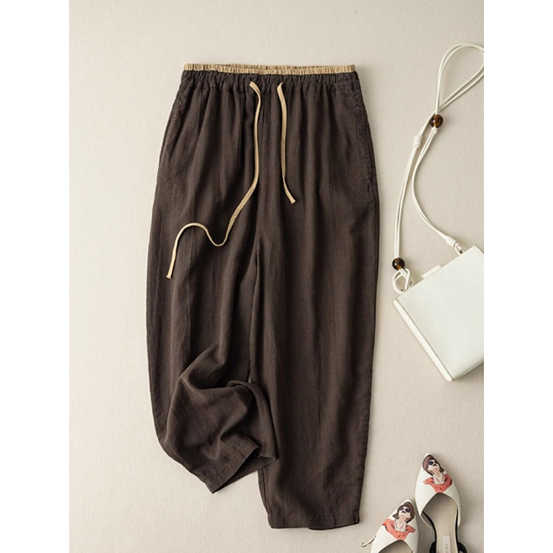 Women's Wide Leg Pants Trousers Vacation Fashion Full Length Mid Waist Plain Elastic Waist Breathable Comfortable Micro-elastic Street Daily Wear Going out Dark Brown Black White Army Green Summer