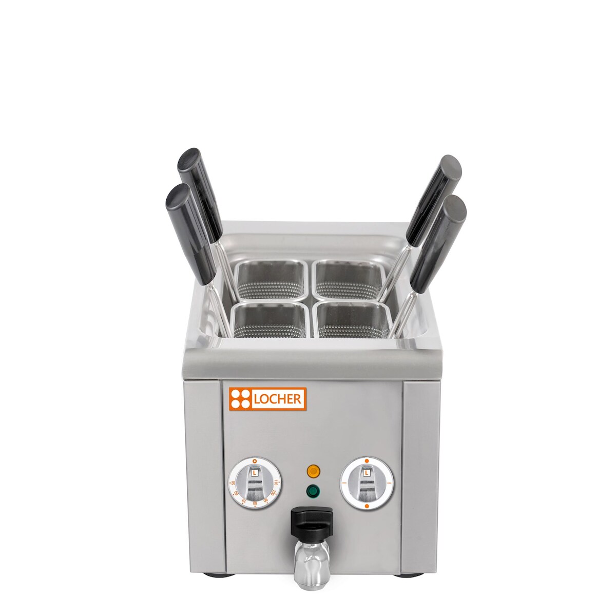 LOCHER Elektro-Nudelkocher, 4 CNS-Portionsbehälter und gelochter Einlegeboden, Anschlusswert: 3,2 kW / 230 V