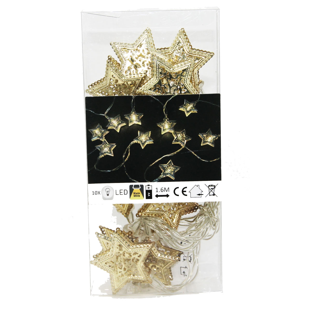 Lichterkette mit kleinen verzierten goldenen Sternen 10 LEDs 160cm