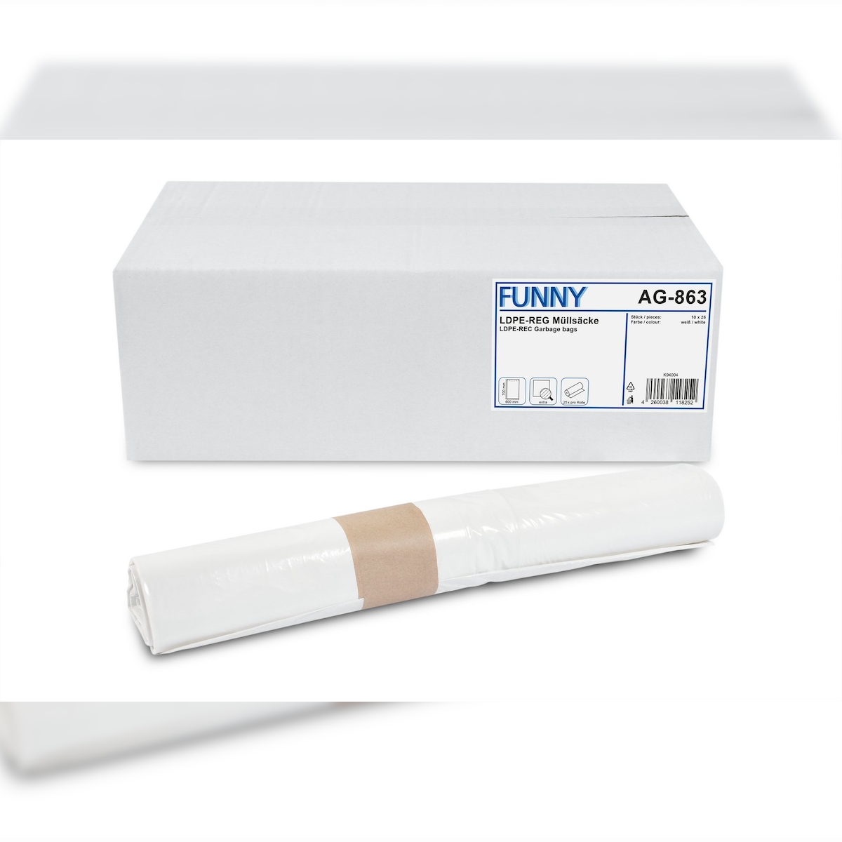 Funny Müllbeutel, weiß, 60 Liter, 250 Stück (10 Rollen á 25 Stück)