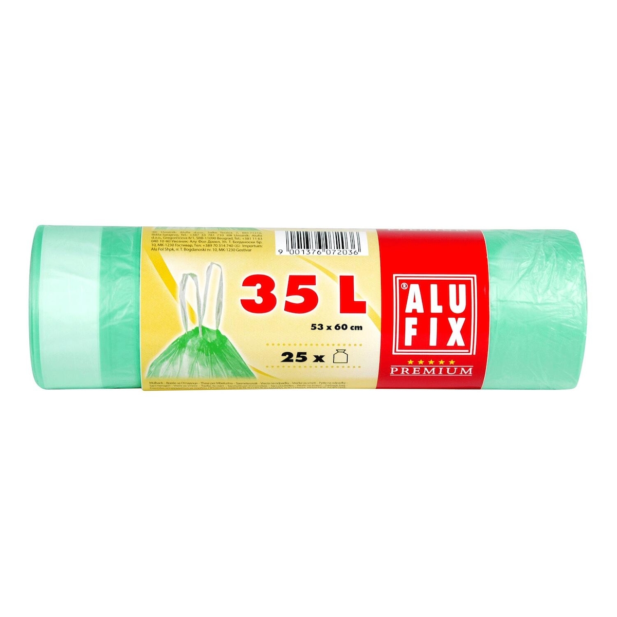 50x ALUFIX Müllsäcke mit Zugband 35L HDPE 53x60 cm 15my grün transparent
