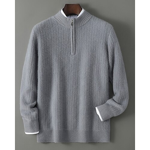 maglione da uomo in pura lana e cashmere di alta qualità con cerniera a un quarto, classico pullover lavorato a maglia, morbido, caldo e traspirante