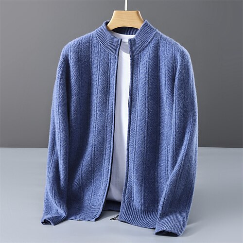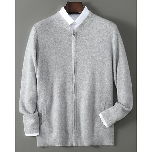 maglione cardigan da uomo in pura lana e cashmere di alta qualità, classico, lavorato a maglia, con cerniera, morbido, caldo e traspirante