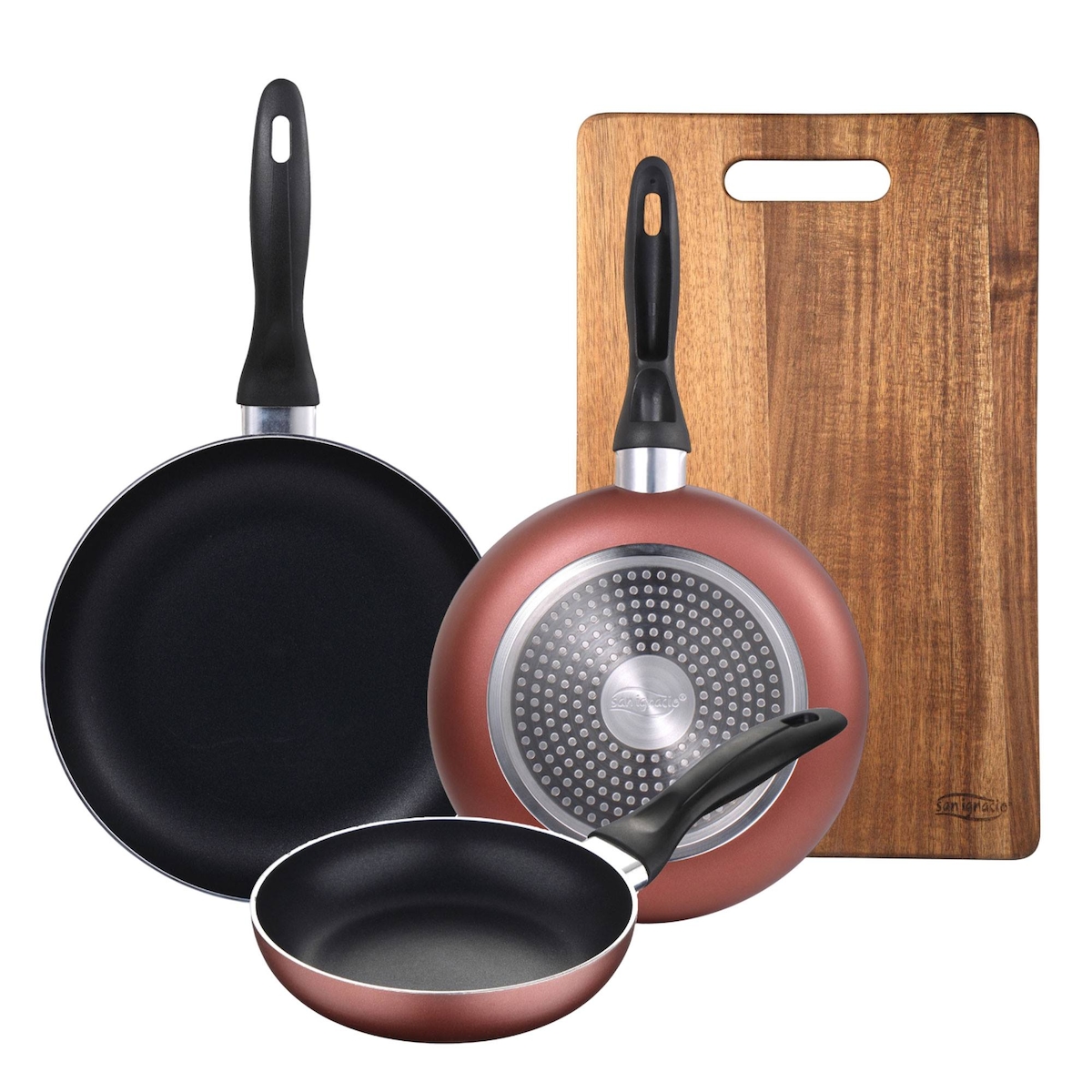 BERGNER - Set aus 3 Pfannen 16/20/24 cm Induktion gepresstes Aluminium Paradise Schneidebrett 40,3x25,2x2,5 cm aus Holz