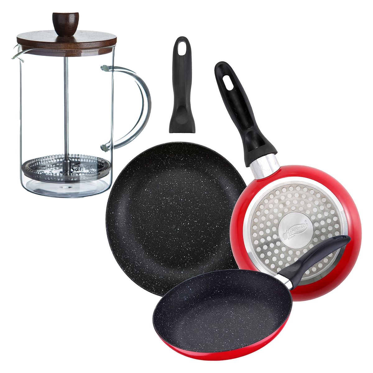 BERGNER - Set aus 3 Pfannen mit Marmorbeschichtung Ø16/Ø20/Ø24 cm Stempel-Kaffeemaschine aus Borosilikatglas 15,8×10×18,8 cm