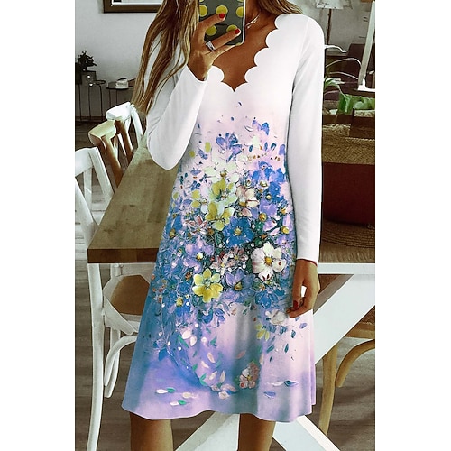 Per donna Mini Abito Abito a Tubino Casual Ferie Uscire Weekend Vestibilità regolare Floreale Grafico Manica Lunga Girocollo Blu Rosa Viola Verde Primavera Autunno Inverno