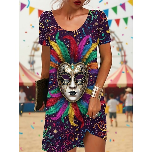 Per donna Mini Abito Vestito Casual Vestito T-Shirt Moda Moderno Quotidiano All'aperto Vacanza Vestibilità regolare Grafico Manica Corta Girocollo Viola chiaro Viola Fucsia Verde Estate Primavera