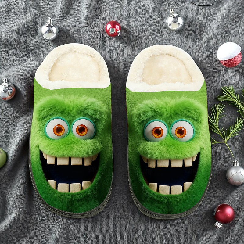 Men's Christmas Monster Slippers - Fun Green Monster Design, Warm Winter Slippers for Christmas Parties, Holiday Gift Ideas, and Cozy Comfort