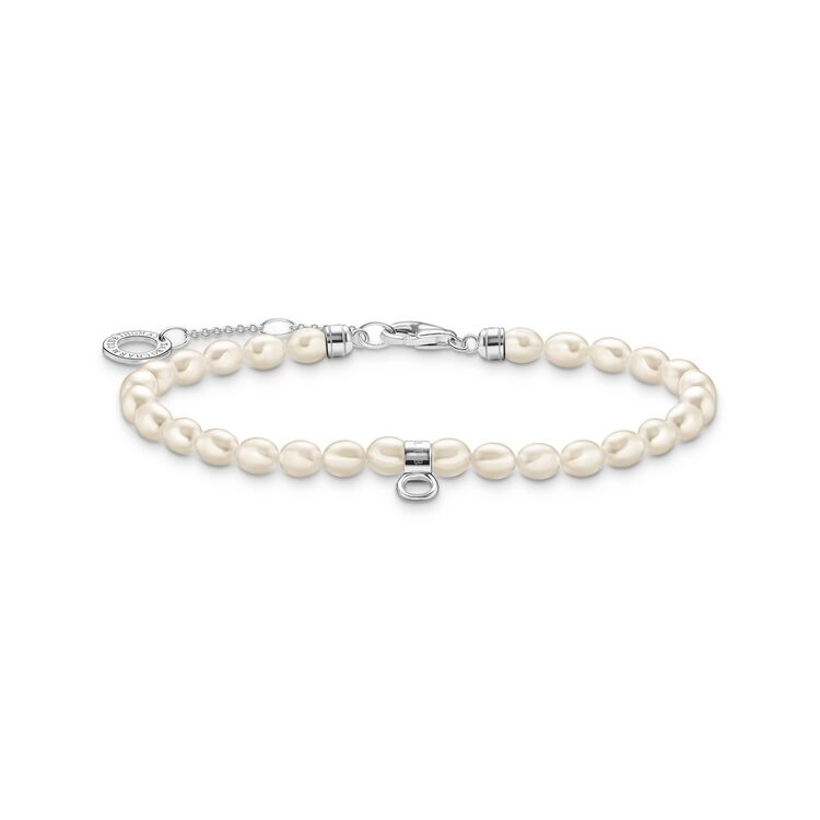 Thomas Sabo - Charm-armband med Vita, Ovala Pärlor
