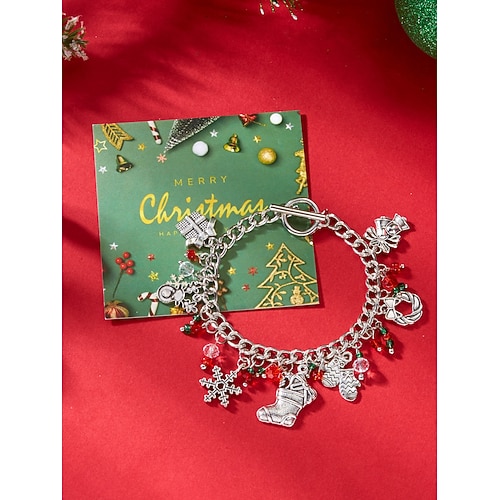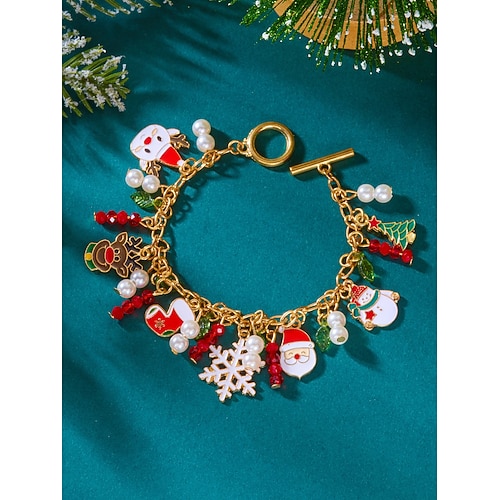 Braccialetto natalizio da donna, oro festivo con Babbo Natale, pupazzo di neve, pan di zenzero e ornamenti natalizi, regalo di Natale perfetto