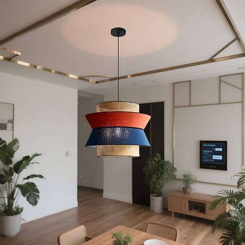 Lampadario vintage a sospensione con paralume a cupola in rattan, illuminazione a sospensione semplice, lampadario singolo, lampada a sospensione, decorazione per interni