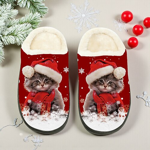 pantofole natalizie da donna con gatti - comode scarpe da interno in pile con stampa di gattini con cappello di Babbo Natale, calde calzature da casa in peluche per regali invernali e per le feste