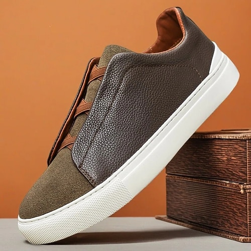 Sneakers casual da uomo marroni con tomaia in morbida pelle per un comfort leggero, ideali per l'uso quotidiano, i viaggi e le uscite rilassate