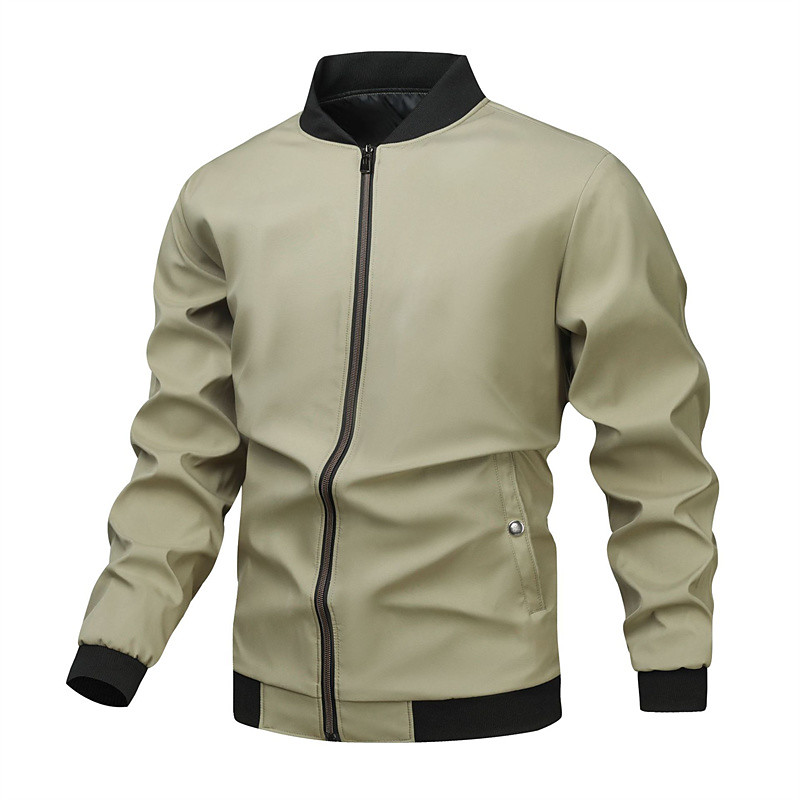 Men's Lightweight Jacket Casual Jacket Vacation Daily Windproof Waterproof Pocket Splice Spring Fall Color Block Fashion Classic Stand Collar Regular Black Khaki Jacket