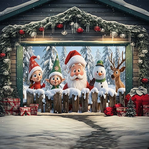 Copertura per porta da garage natalizia – striscione decorativo per esterni festivo, tenda da garage impermeabile con motivo di albero di Natale e pupazzo di neve di Babbo Natale per decorazioni