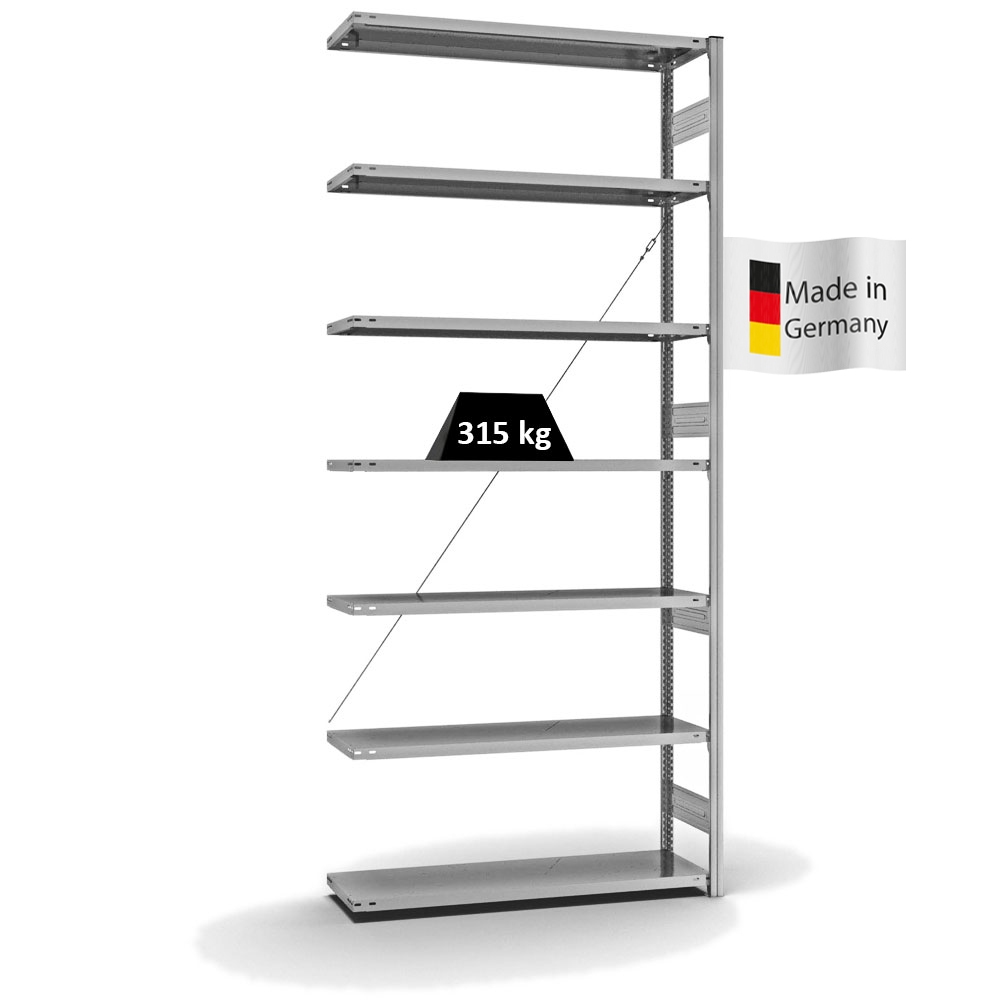 PROREGAL Fachbodenregal Stecksystem | Anbauregal | HxBxT 300x130x40cm | 7 Ebenen | Fachlast 315 kg | Einseitig nutzbar | Verzinkt
