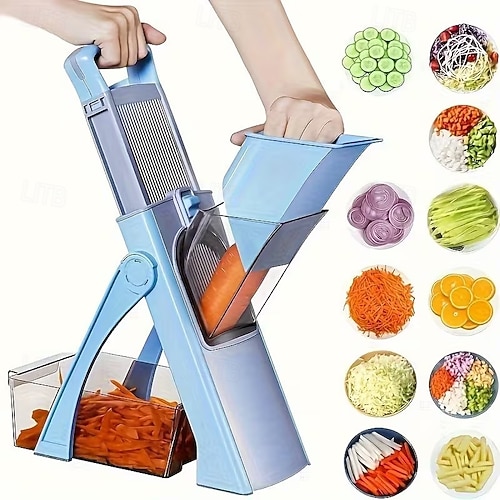 Multifunktionaler Gemüseschneider und -zerkleinerer mit einstellbarer Schnittstärke – manueller Fleischwolf mit Behälter, perfekt für die Küchenvorbereitung