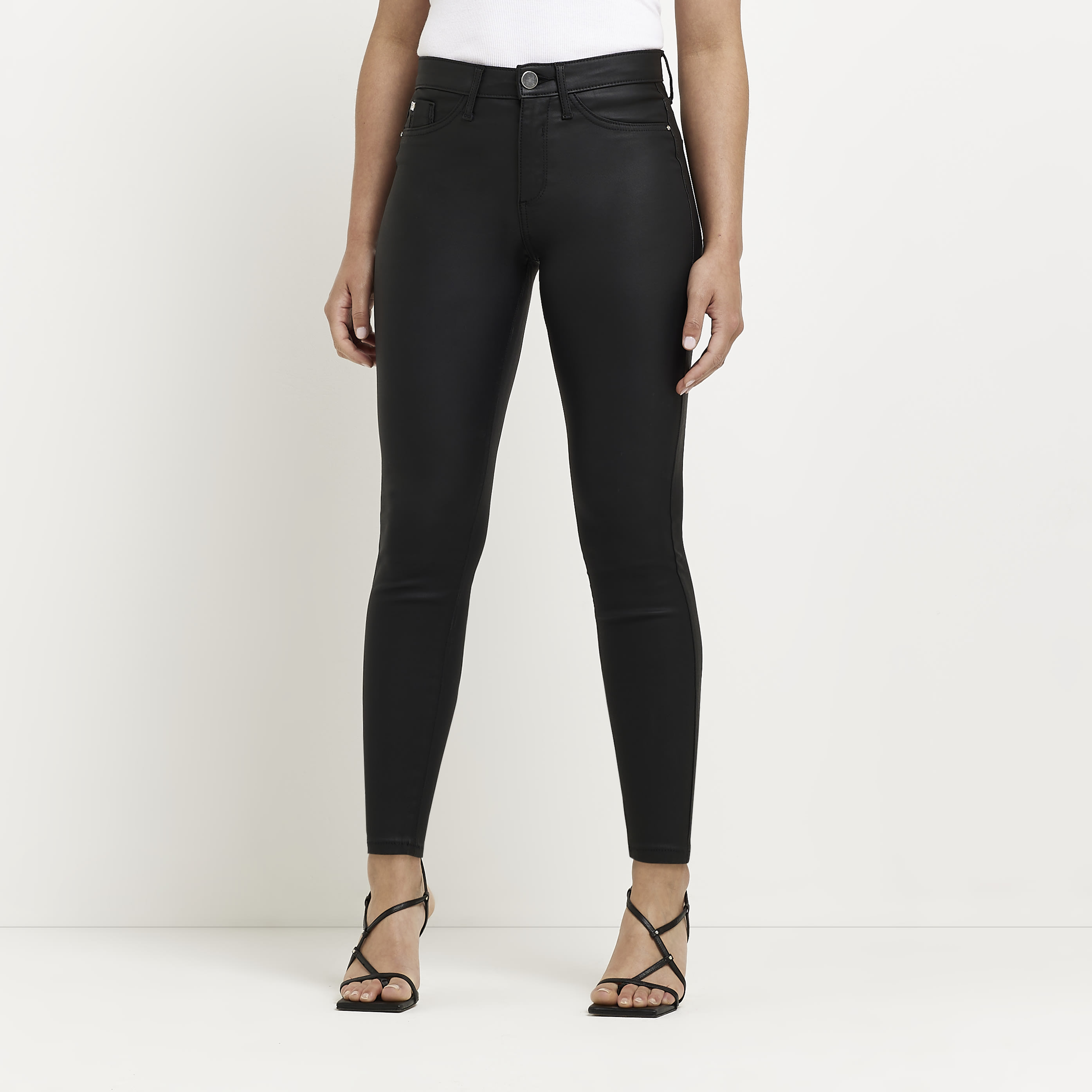 River Island Womens Jeans Petite Black Molly Mid Rise Viscose - Size 4 UK | River Island Sale | Discount Designer Brands