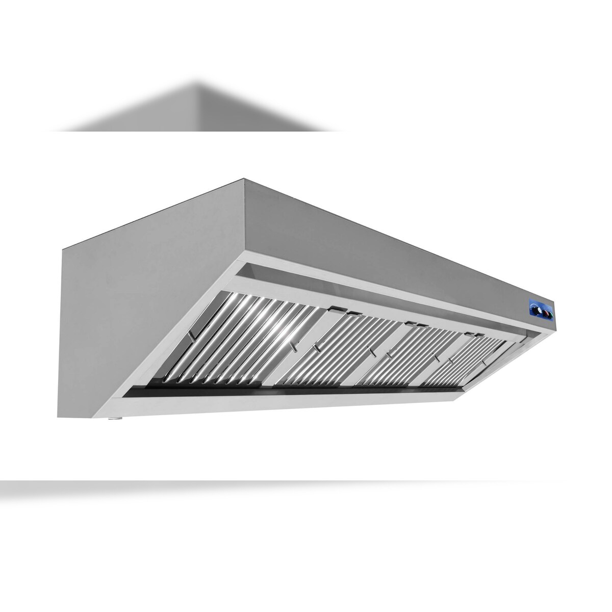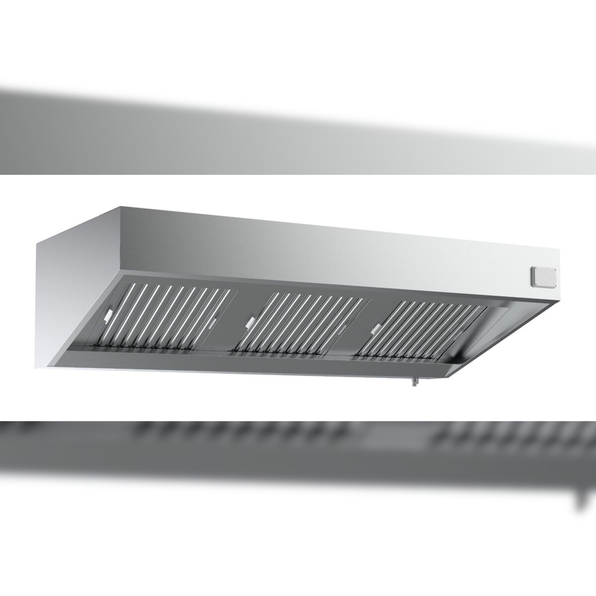 A&S Gastro Wandhaube Kastenform Edelstahl, mit Motor umlaufende Fettauffangrinne, herausnehmbare Flammschutzfilter Typ-B, Beleuchtung mit Leuchtstoffröhre,
