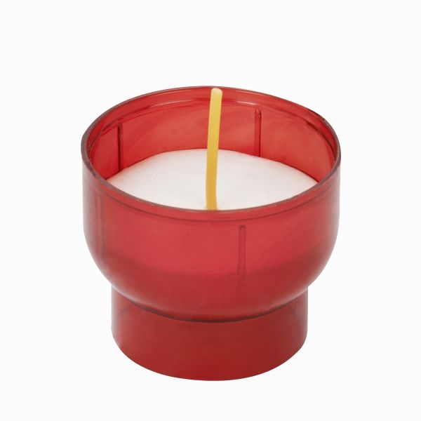 Jaspers Kerzen Opferlichte 2 Stunden Weiß mit roter Mehrweg-Kunststoff-Hülle 40 x Ø 47 mm, 300 Stück
