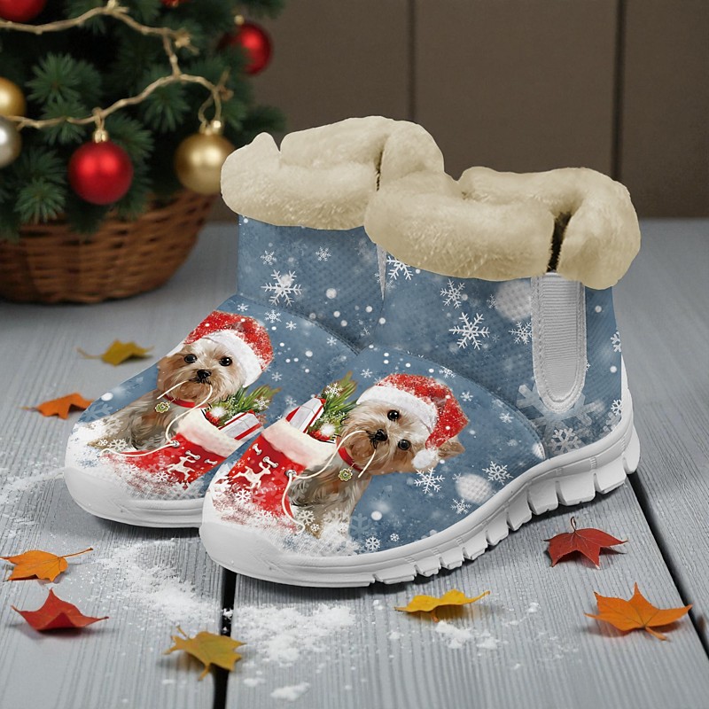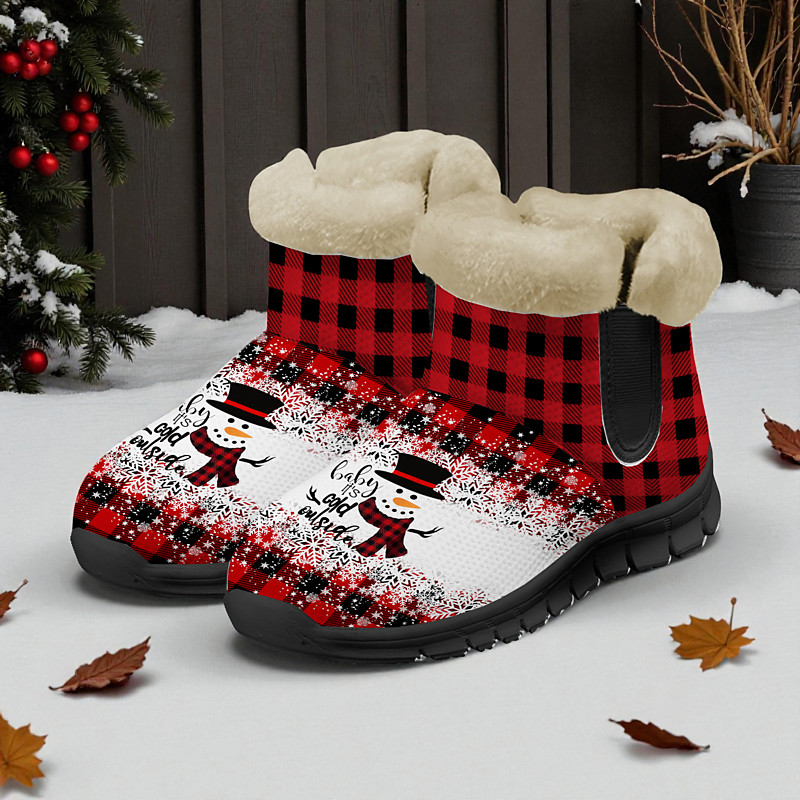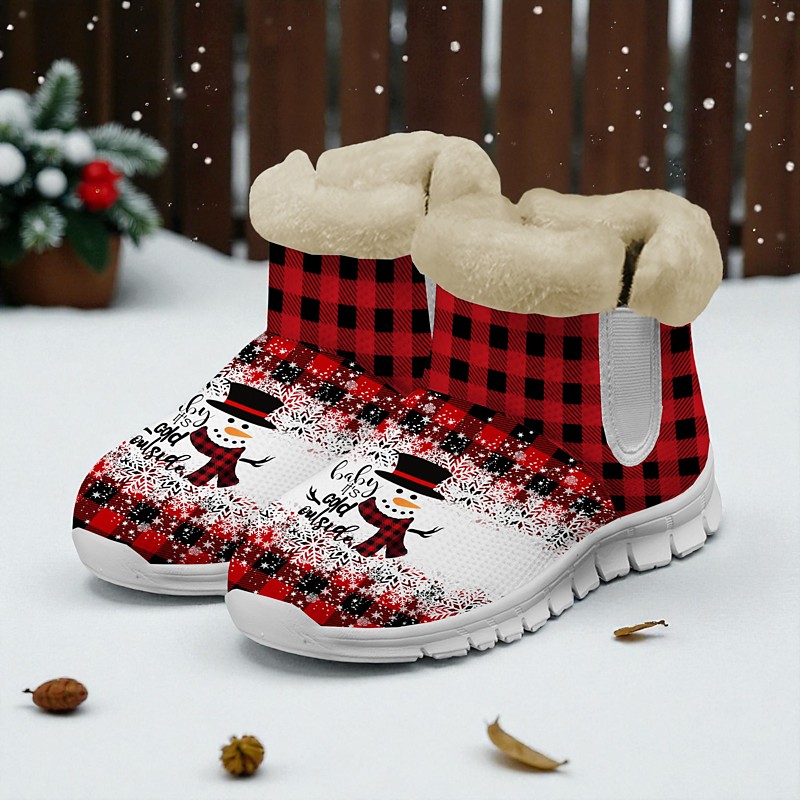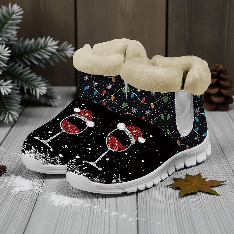Women's Christmas Warm Fur-Lined Boots with Cute Santa Cat Print – Cozy Winter Style, Non-Slip Lightweight Sole, Perfect for Holiday Parties, Outdoor Walks, Casual Wear and Christmas Gift Giving