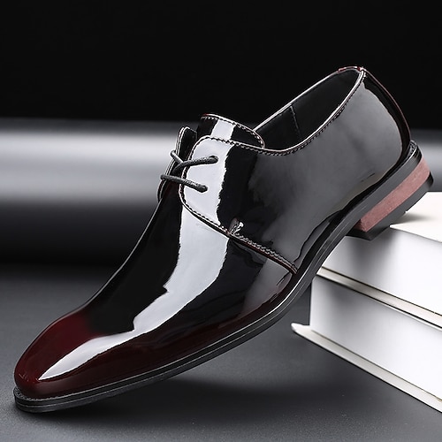 scarpe oxford da uomo in similpelle verniciata – scarpe eleganti nere con lacci per matrimoni, riunioni di lavoro ed eventi serali