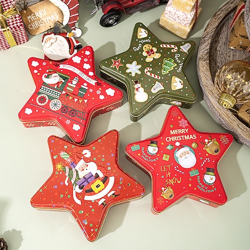 Scatole per biscotti natalizi con coperchi per fare regali, contenitori di latta natalizi, scatole di metallo a forma di stella, confezioni regalo per caramelle e cioccolatini, accessori per
