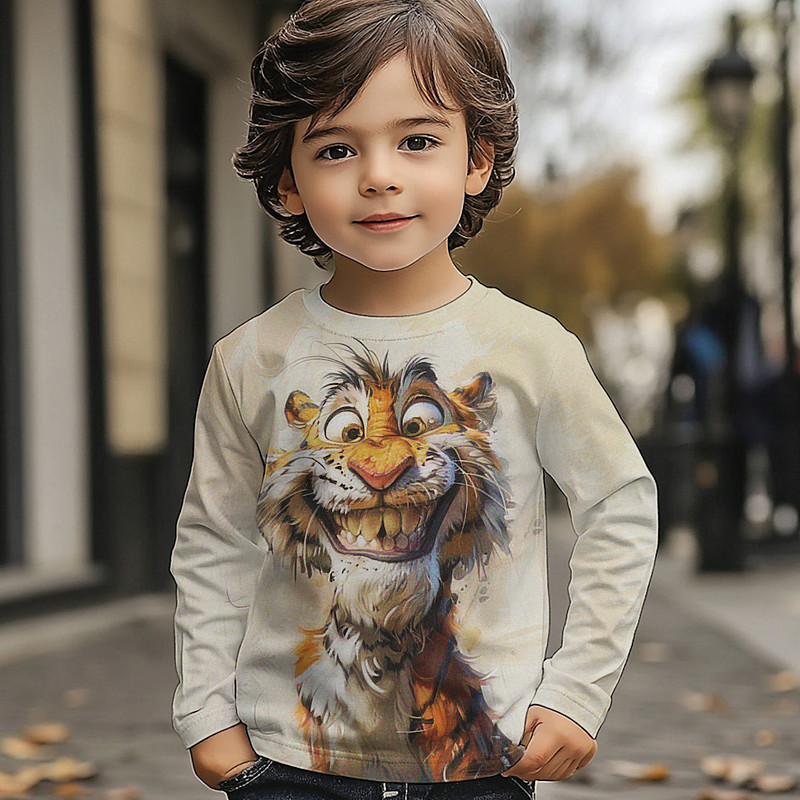 Boys' 3D Graphic Animal Cartoon T shirt Tee Long Sleeve Spring Fall Fashion Basic Kids 4-12 Years Crew Neck Outdoor Casual Daily Regular Fit
