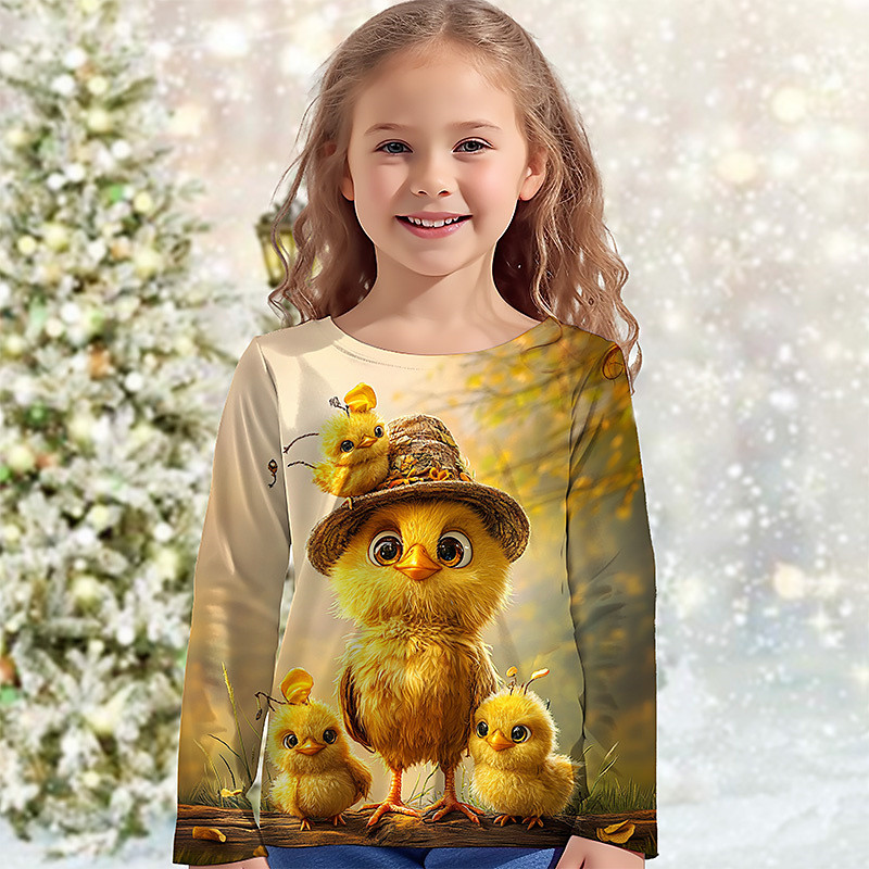 Girls' 3D Graphic Animal T shirt Tee Long Sleeve Spring Fall Fashion Basic Kids 4-12 Years Crew Neck Outdoor Casual Daily Regular Fit