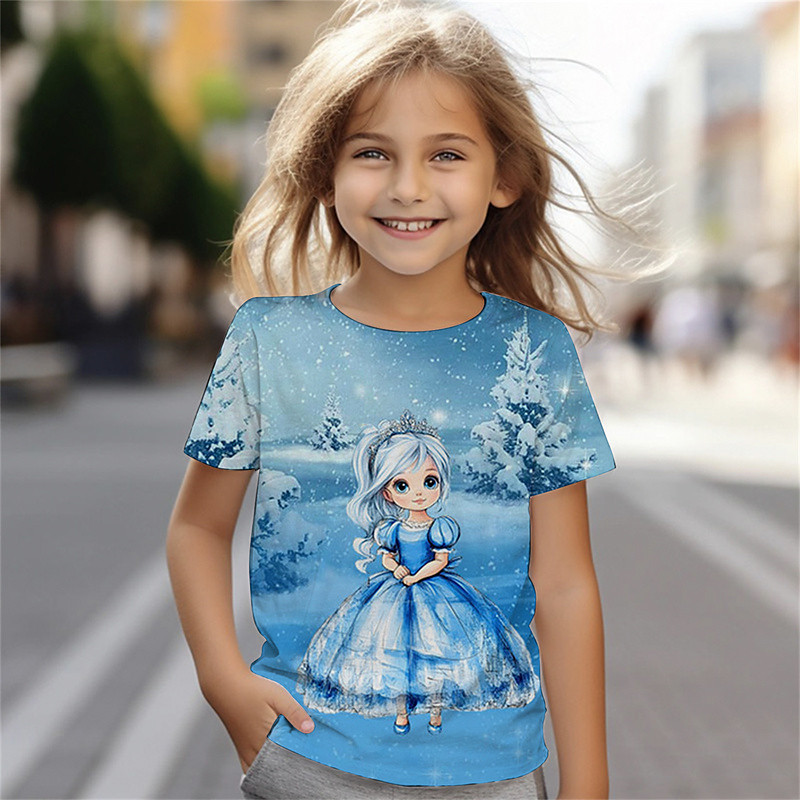 Girls' 3D Graphic Cartoon Snowflake T shirt Tee Short Sleeve Summer Spring Fashion Basic Kids 4-12 Years Crew Neck Outdoor Casual Daily Regular Fit