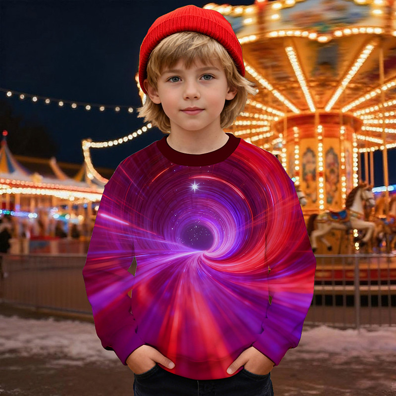Boys' 3D Graphic Optical Illusion Sweatshirt Long Sleeve Spring Fall Fashion Basic Kids 4-12 Years Crew Neck Outdoor Casual Daily Regular Fit
