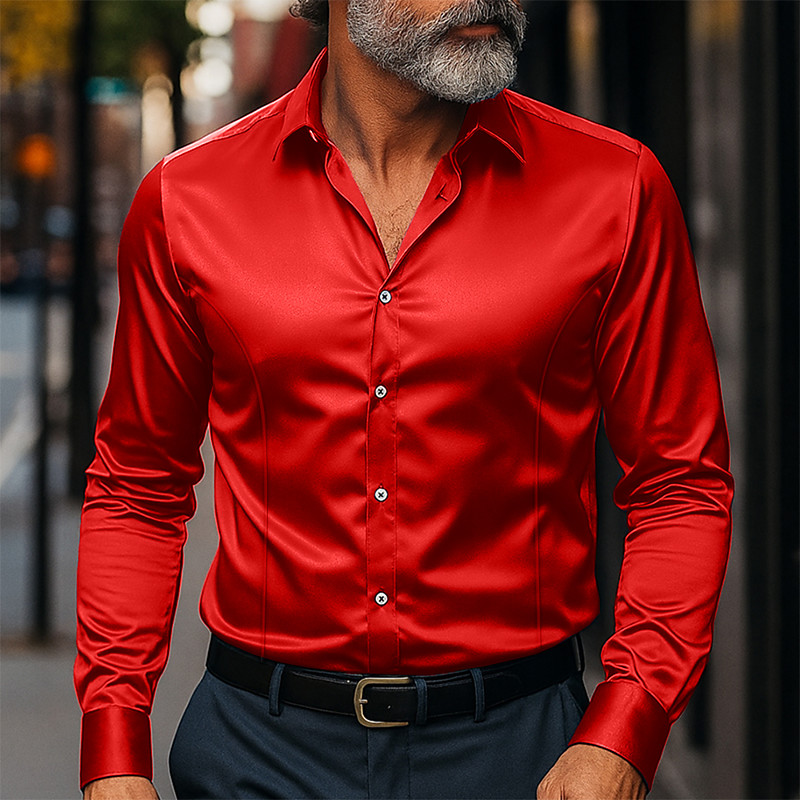 Men's Shirt Silk Like Satin Shirt Dress Shirt Casual Shirt Prom Shirt Plain Formal Wedding Black White Red Royal Blue Long Sleeve Lapel Spring Fall All Seasons Clothing Apparel Plain