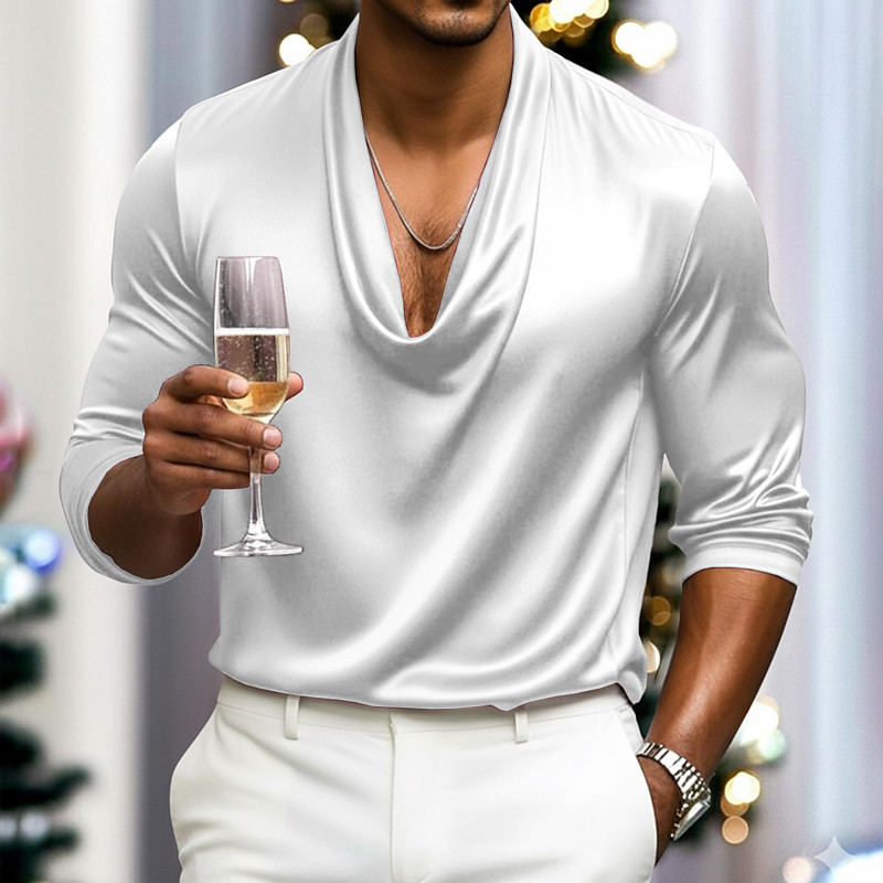 Men's Shirt Silk Like Satin Shirt Casual Shirt Plain Formal Wedding White Navy Blue Gold Dark Purple Long Sleeve Cowl Neck Spring Fall All Seasons Clothing Apparel Ruched