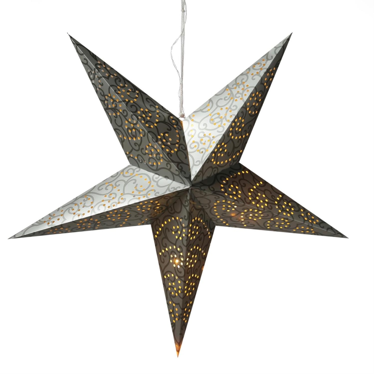 MARELIDA LED Papierstern Weihnachtsstern Faltstern hängend 15 LED D:60cm Batterie silber