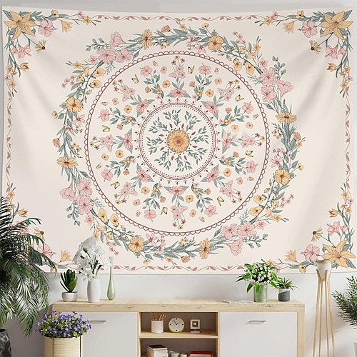 mandala floreale neutro, fiore rosa, foglie marroni, motivo circolare botanico, crema, arazzo da parete, arazzo da parete, testiera per camera da letto, soggiorno, dormitorio, decorazione estetica,