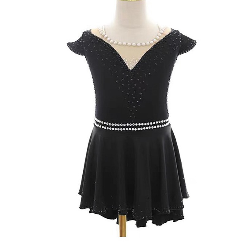 Eiskunstlaufkleid Damen Mädchen Eislaufen Kleid Schwarz Patchwork Offener Rücken Netzstoff Spandex Dehnbar Training Übung Professionell Eiskunstlaufkleidung Thermowarm Kristall / Strass Ärmellos