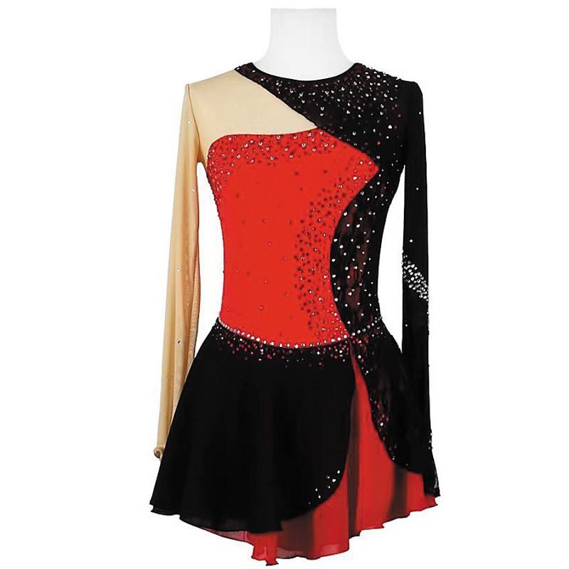 Figure Skating Dress Women's Girls' Ice Skating Dress Red Yellow Thumbhole Halo Dyeing Mesh Spandex Stretchy Training Practice Professional Skating Wear Thermal Warm Classic Crystal / Rhinestone Long